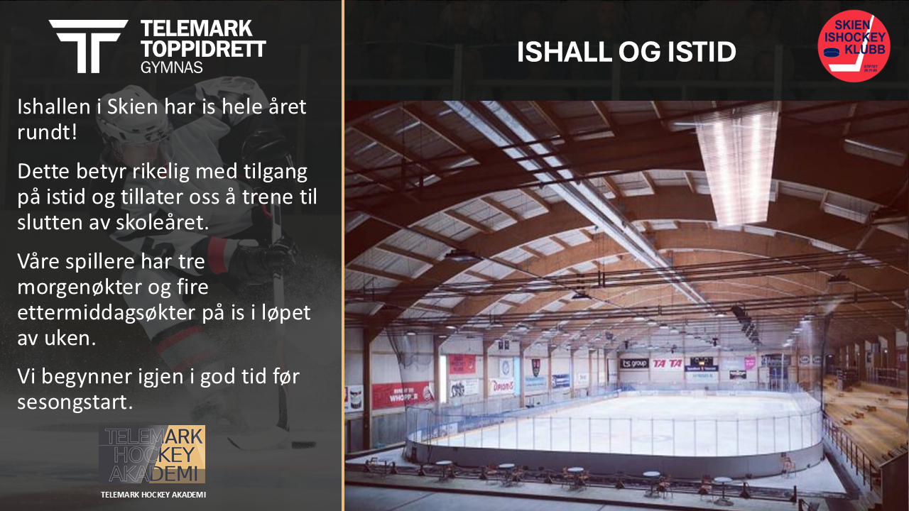 ✔ 7–8 økter on-ice + 3–4 økter off-ice per uke